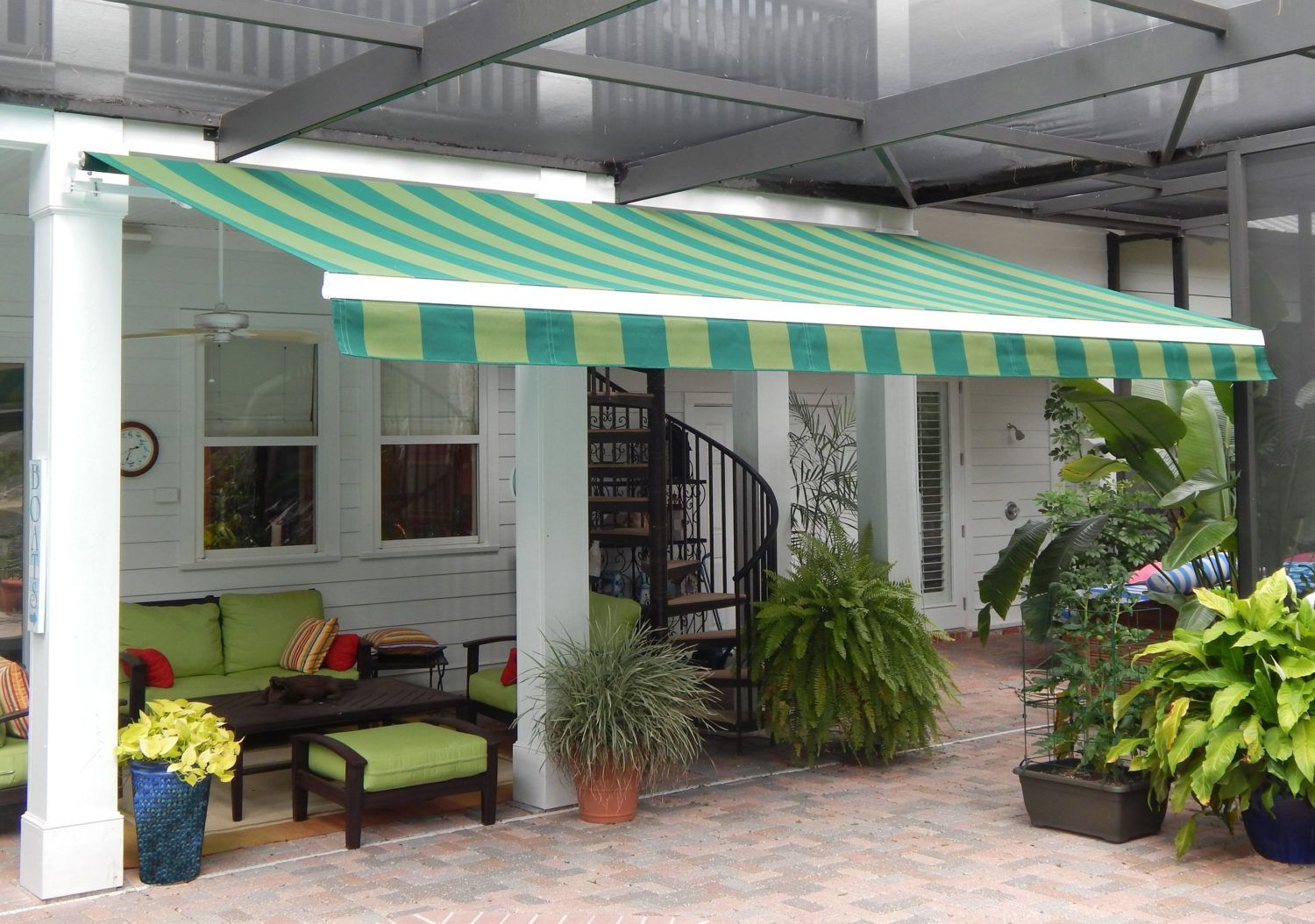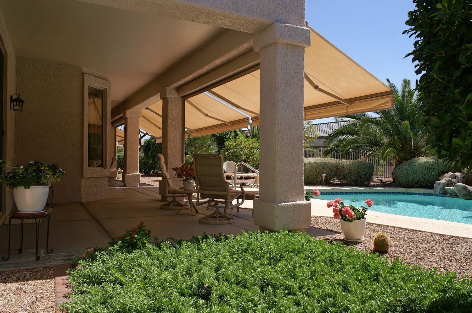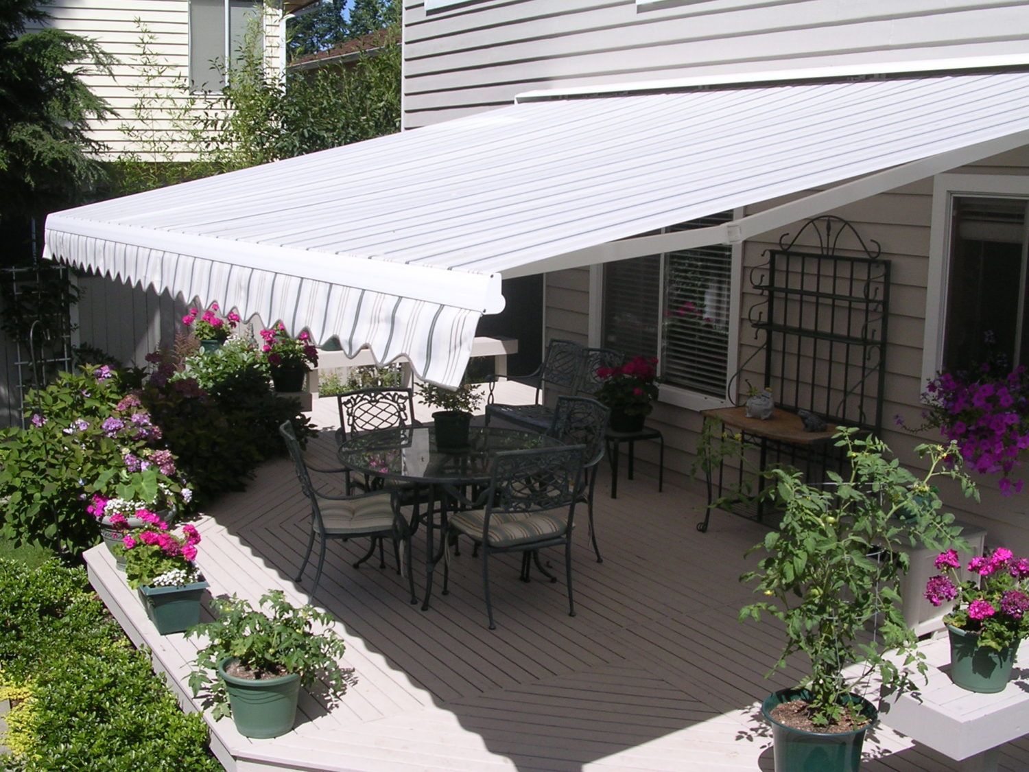 These awnings will reduce your cooling costs, expand your living space, and add style and color. These shading systems are specifically crafted to meet your unique shading needs. With virtually millions of color & pattern options, no two awnings that we install are the same.